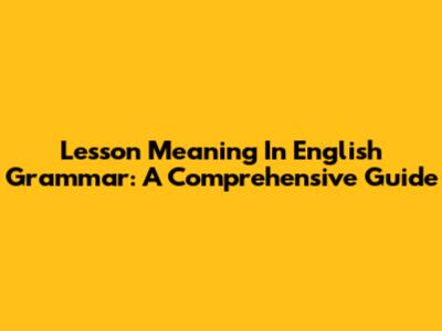 Lesson Meaning In English Grammar: A Comprehensive Guide