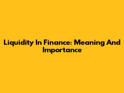 Liquidity In Finance: Meaning And Importance