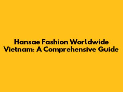 Hansae Fashion Worldwide Vietnam: A Comprehensive Guide
