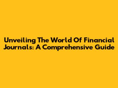 Unveiling The World Of Financial Journals: A Comprehensive Guide