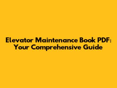 Elevator Maintenance Book PDF: Your Comprehensive Guide