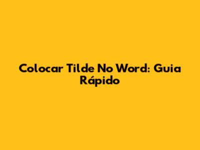 Colocar Tilde No Word: Guia Rápido
