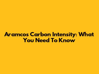 Aramco's Carbon Intensity: What You Need To Know