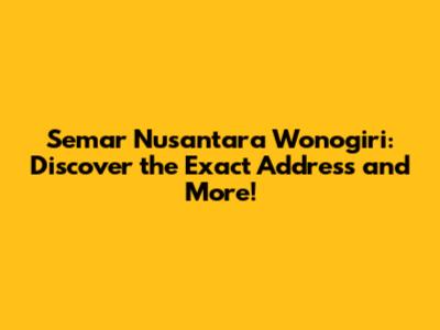 Hey guys! Are you looking for the exact alamat Semar Nusantara Wonogiri? You've landed on the right page! This article dives deep into providing you with the complete address, plus extra details that'll make your visit or connection with Semar Nusantara in Wonogiri super smooth. Forget the endless online searches – we've compiled everything you need to know right here. We'll cover not just the location but also what makes Semar Nusantara in Wonogiri so special. So, let's get started and uncover all the essential information!