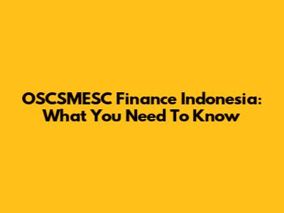 OSCSMESC Finance Indonesia: What You Need To Know