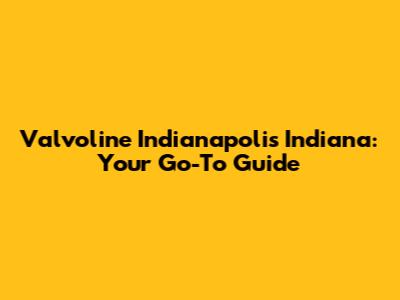 Valvoline Indianapolis Indiana: Your Go-To Guide