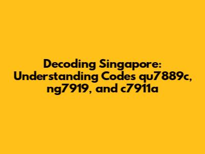 Ever stumbled upon a mysterious code and wondered what it meant? Today, we're diving deep into the world of Singaporean codes, specifically qu7889c, ng7919, and c7911a. These alphanumeric strings might seem like gibberish at first glance, but each one potentially holds a key to unlocking specific information or processes within the Lion City. Whether you're a local resident, a curious traveler, or someone involved in international trade, understanding these codes can be incredibly beneficial. Let's break them down and see what secrets they might reveal!