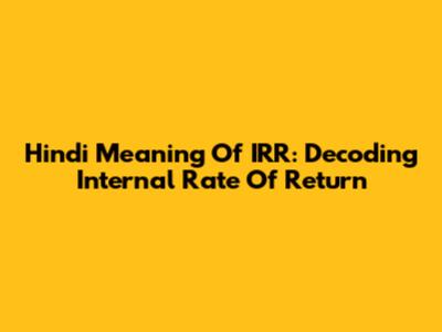 Hindi Meaning Of IRR: Decoding Internal Rate Of Return
