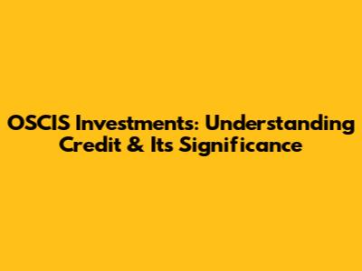 OSCIS Investments: Understanding Credit & Its Significance