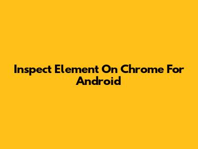 Inspect Element On Chrome For Android