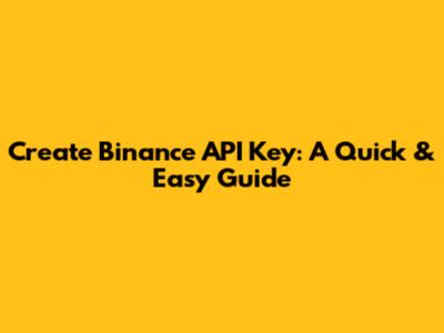 Create Binance API Key: A Quick & Easy Guide
