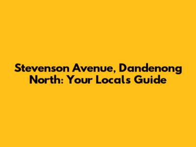 Hey everyone! If you're looking for a lowdown on Stevenson Avenue in Dandenong North, you've come to the right place. This guide is your friendly, local source for everything you need to know about this vibrant street. From the best coffee spots to essential services, we're diving deep into what makes Stevenson Avenue tick. So, grab a cuppa, get comfy, and let's explore this awesome part of Melbourne together! We're going to cover all the bases, from its history to the current happenings, so you'll be well-informed and ready to experience the best Stevenson Avenue has to offer. This thorough exploration aims to provide valuable insights for both residents and visitors alike. So, buckle up; it's going to be a fun ride!