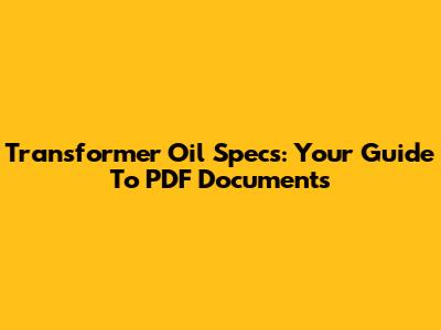 Transformer Oil Specs: Your Guide To PDF Documents