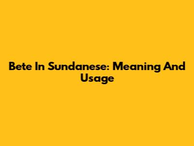 Bete In Sundanese: Meaning And Usage