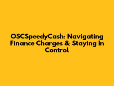 OSCSpeedyCash: Navigating Finance Charges & Staying In Control