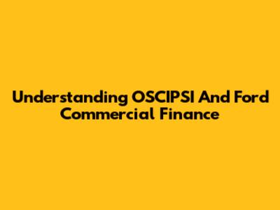 Understanding OSCIPSI And Ford Commercial Finance