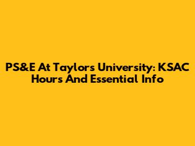PS&E At Taylor's University: KSAC Hours And Essential Info