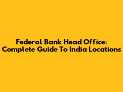 Federal Bank Head Office: Complete Guide To India Locations