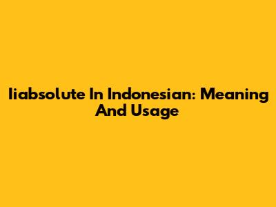 Iiabsolute In Indonesian: Meaning And Usage