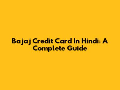 Bajaj Credit Card In Hindi: A Complete Guide