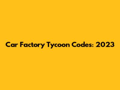 Car Factory Tycoon Codes: 2023