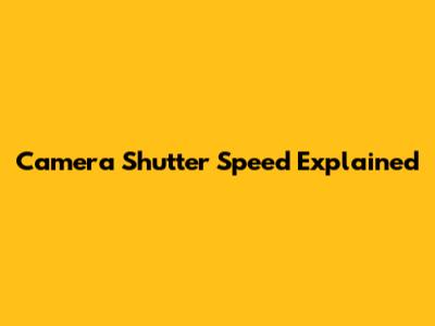 Camera Shutter Speed Explained