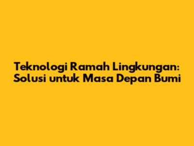 Teknologi Ramah Lingkungan: Solusi Untuk Masa Depan Bumi