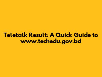 - A: Not necessarily. While www.techedu.gov.bd is an official portal, often used for specific educational initiatives or examinations associated with Teletalk, Teletalk might also publish results on its own official website or through other designated platforms, depending on the nature of the result. Always refer to the original notification or announcement for the precise location where results will be published.