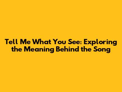 Hey guys! Ever heard the song "Tell Me What You See" and found yourself completely captivated? This song has been making waves, and for good reason! Let’s dive deep into what makes it so special, breaking down the lyrics, the themes, and the overall vibe. This isn't just another song; it’s a whole experience, and we're here to unpack it all. So, grab your headphones, maybe a cup of coffee, and let's get started!