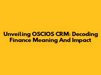 Unveiling OSCIOS CRM: Decoding Finance Meaning And Impact