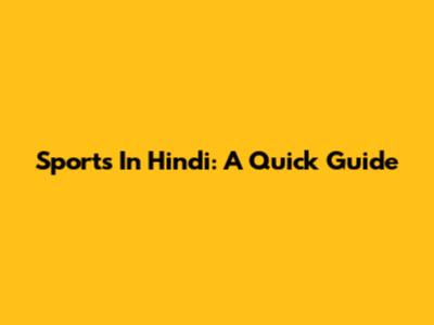 Sports In Hindi: A Quick Guide