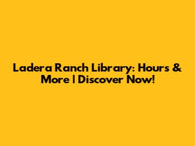 Ladera Ranch Library: Hours & More | Discover Now!
