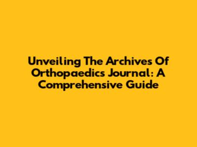 Unveiling The Archives Of Orthopaedics Journal: A Comprehensive Guide