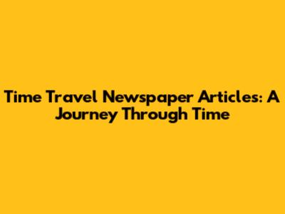 Time Travel Newspaper Articles: Unveiling The Past & Future