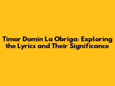 Unpacking the Lyrics: What Does "Timor Domin La Obriga" Really Mean?