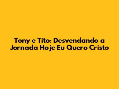 Tony E Tito: Desvendando A Jornada 'Hoje Eu Quero Cristo'