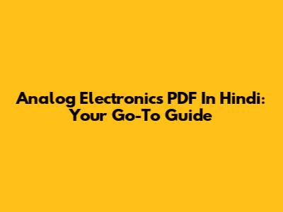 Analog Electronics PDF In Hindi: Your Go-To Guide