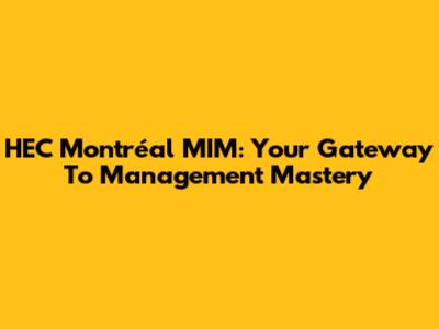 HEC Montréal MIM: Your Gateway To Management Mastery