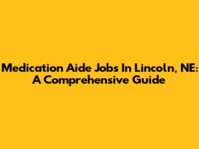 Medication Aide Jobs In Lincoln, NE: A Comprehensive Guide