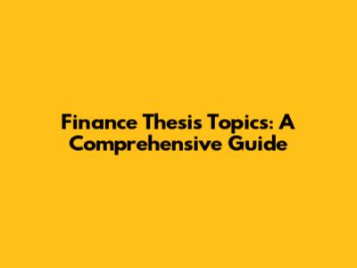 Finance Thesis Topics: A Comprehensive Guide