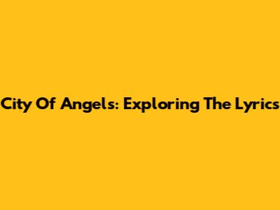 City Of Angels: Exploring The Lyrics