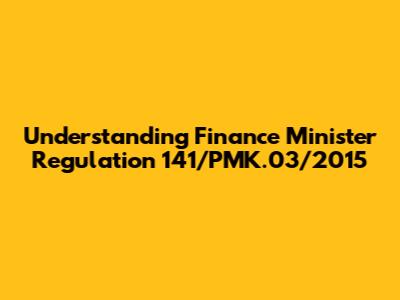 Understanding Finance Minister Regulation 141/PMK.03/2015