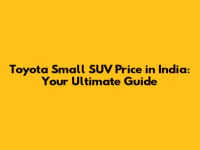 Hey guys! So, you're looking into buying a Toyota small SUV in India, huh? Smart choice! Toyota is known for its reliability and build quality, making it a popular option for many. But let's be real, one of the biggest questions on your mind is probably the price. The Indian market offers a range of Toyota SUVs, from compact city-friendly models to slightly larger ones that can handle a bit more adventure. This comprehensive guide will break down everything you need to know about the Toyota small SUV price in India, including the various models available, their features, and how they stack up against the competition. We'll also dive into factors that influence the price, like trim levels, optional features, and the ever-changing market conditions. Get ready to explore the exciting world of Toyota SUVs in India and find the perfect ride that fits both your needs and your budget! Let's get started.