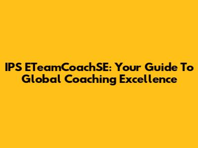IPS ETeamCoachSE: Your Guide To Global Coaching Excellence
