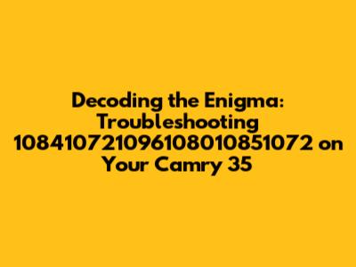 Alright, car enthusiasts and Camry aficionados! Ever stumbled upon a mysterious code or sequence that leaves you scratching your head? Today, we're diving deep into the cryptic world of "108410721096108010851072" as it relates to the Toyota Camry 35. Now, I know what you're thinking: "What in the world does that even mean?" Don't worry; we'll break it down, explore potential causes, and arm you with the knowledge to tackle this automotive puzzle. This article is all about making sense of this alphanumeric jumble and figuring out how it might be affecting your beloved Camry 35.