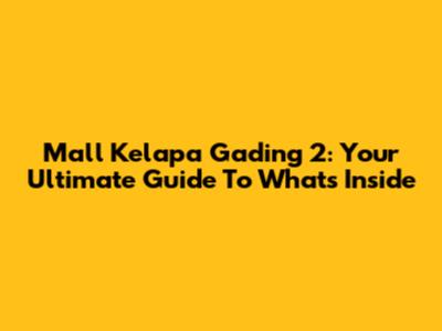 Mall Kelapa Gading 2: Your Ultimate Guide To What's Inside