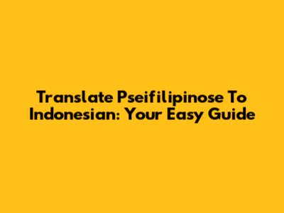 Translate Pseifilipinose To Indonesian: Your Easy Guide