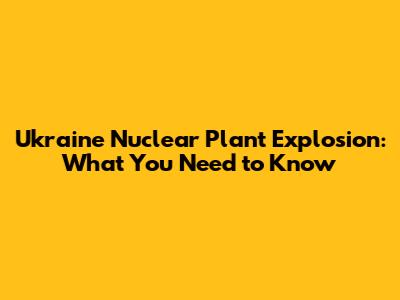 Ukraine Nuclear Plant Explosion: What You Need To Know