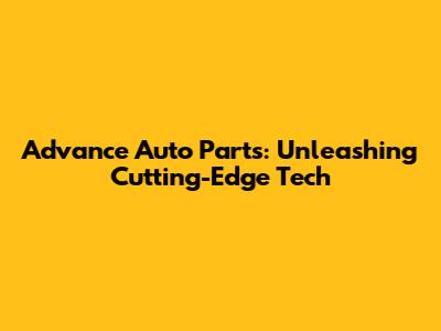 Advance Auto Parts: Unleashing Cutting-Edge Tech