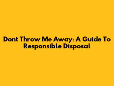 Don't Throw Me Away: A Guide To Responsible Disposal